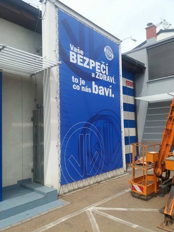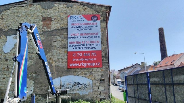 - Montáž reklamy může být prováděna z vysokozdvižné montážní plošiny (cena je stanovena dle hodin montáže na plošině).